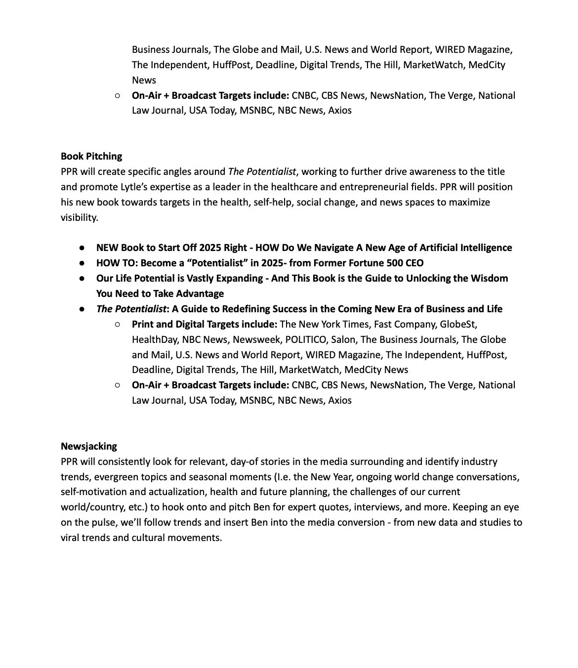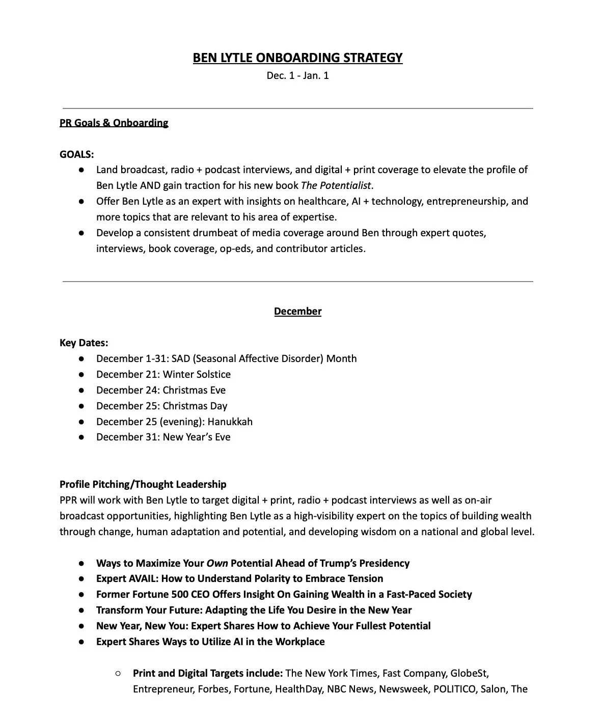 This is a one-month onboarding strategy that I worked on for one of Pace’s newest clients, Ben Lytle: a former Fortune 500 CEO, entrepreneur, and author.