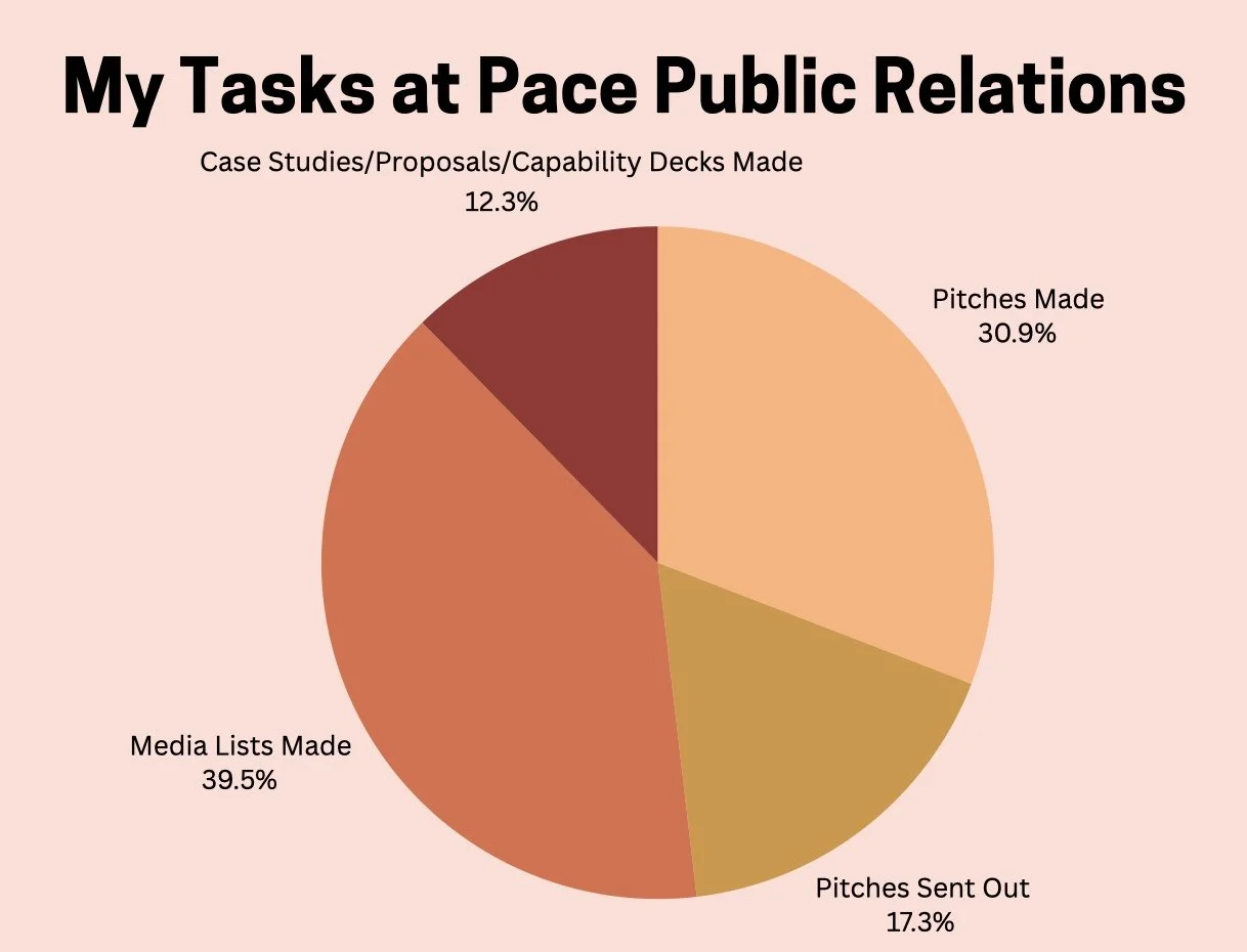 Most of my time was spent building media lists. My supervisor assigned me to gather reporters, producers, outlets, or podcasts into different lists that pertained to specific clients we had and trending news. We used these lists when we would send out our pitches; this allowed us to build connections with outlets.